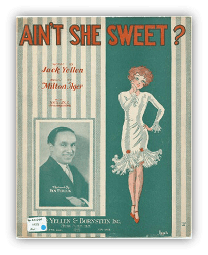 That the girl in question is a flapper is somewhat less obvious on “Ain’t She Sweet”, than it was for “Five Foot Two, Eyes Of Blue.” The clues are there though: