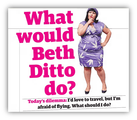 Soon she became a fashion designer, for plus-sized retail chain Evans. She became a runway model for Jean Paul Gaultier. She wrote an advice column in The Guardian: “What Would Betto Ditto Do?”: answering such questions as “I’m a 15-year-old bisexual feminist attracted to a sexist, homophobic male friend. What should I do?”