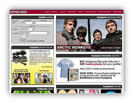 All because, months and months before they had actually released anything official, you could listen to a bunch of Arctic Monkeys songs on their MySpace profile.