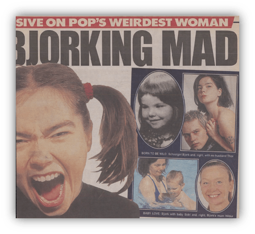 - And to share the titbit that the reporter was then offered an advertisement contract for a hairspray company: “‘I get battered by pop stars all the time but I use this hairspray and it keeps my hair in place!” Björk thought she should do it.
