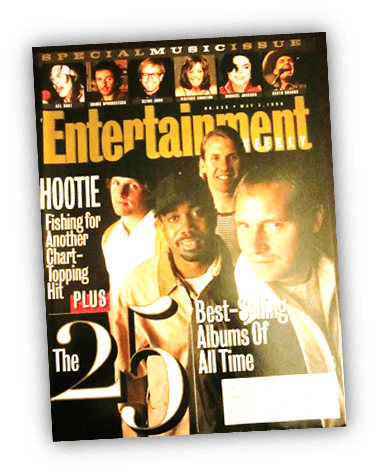 Alt text: "Musician magazine cover featuring Hootie and the Blowfish with the headline 'Hootie Fights Back.'"