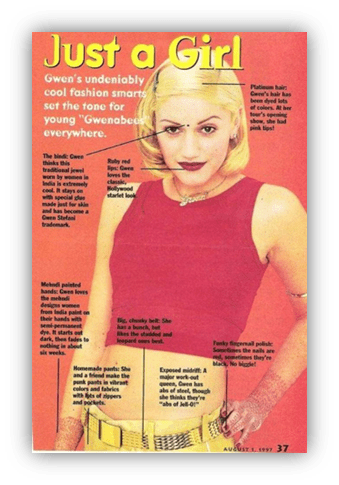 Gwen has said, on multiple occasions, that she has always been surrounded by boys: in the band, in the audience, in the mosh pit… although after “Just A Girl” that started to change.