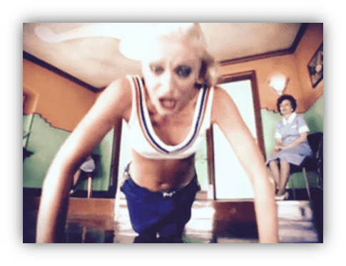 At that was at the end of the video, by which point, after all the kick-boxing she had been doing, lesser ska-punk stars might have taken a breather.