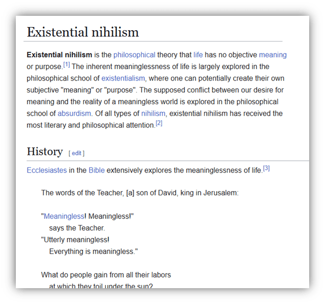 (It’s actually quoted in the Wikipedia page on “existential nihilism,” so I’m not just making it up)