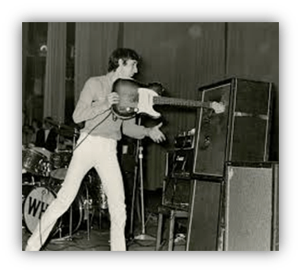 A lot of this was due to Pete’s love of amassing larger and larger speakers and then making far-out noises with his guitar to make amassing such a collection worthwhile. Many of those far-out noises were the result of his smashing his guitar and other innocent bystanding equipment into pieces. Also from playing slide-guitar with his microphone stand.