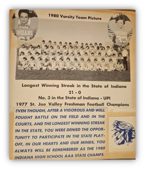 The big story at St. Joe High in 1980 was the fact that its varsity football team went undefeated for a second straight year.