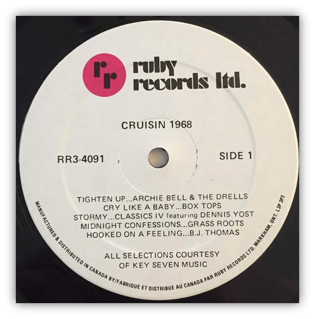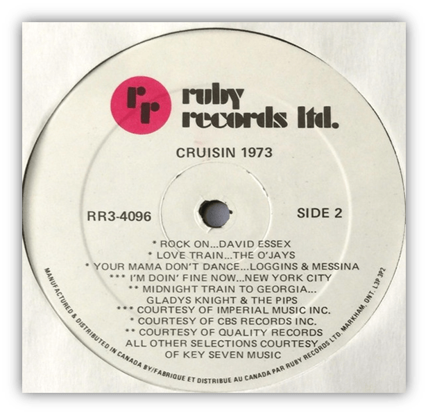 Canadian label Ruby Records Limited – not to be confused with a U.S. label called Ruby Records – launched its own Cruisin’ collection in the early 1980s.