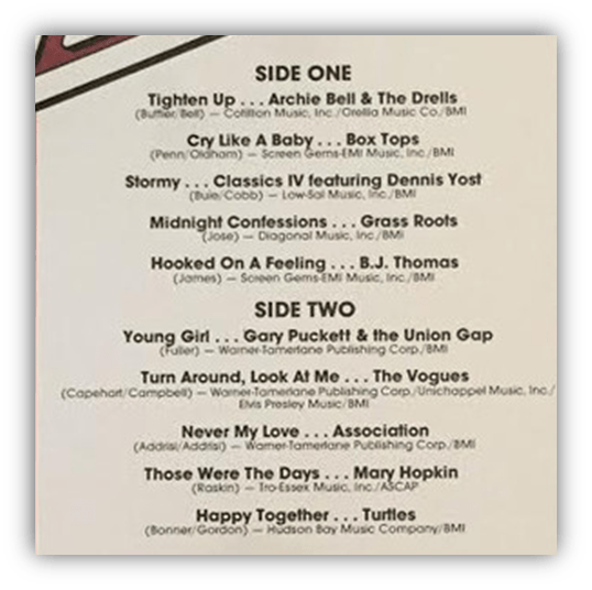 These were cut-rate products best bought to fill gaps in a record collection. And that’s why I bought Cruisin’ 1968, 1973 and 1975. What I didn’t know at the time was there was a reason many songs were listed on the back covers with an asterisk.