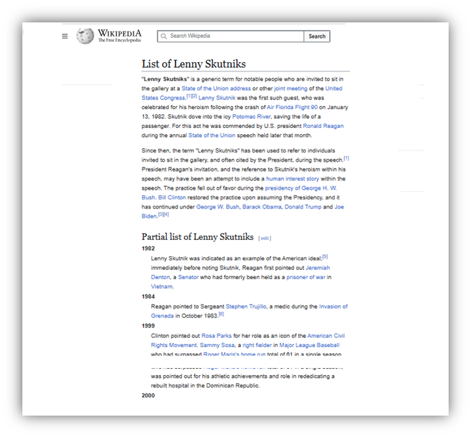 It was this moment that transformed political speechmaking. Today, a “Skutnik” refers to an everyperson hero or an individual who has overcome adversity, and is invited to attend the State of the Union address to be publicly acknowledged by the President.