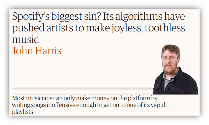 If such slight stories were not enough, the Spotify-hating industrial complex also requires sub-editors to desperately reach for progressively more sensationalist headlines…