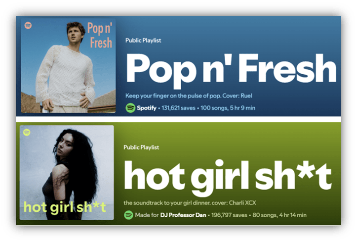 The pop stars on popular playlists like Pop’N’Fresh, Get Popped, Today’s Pop Hits and hot girl sh*t playlists, are in competition with Ed and Sabrina.