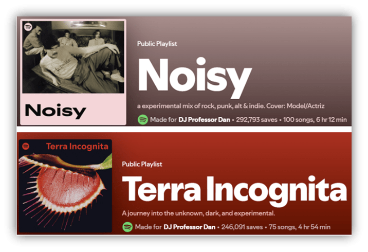 - You can listen to a playlist – either one made by the Spotify-algorithm, one made by an actual human Spotify employee, or one just made by some random regular person – and if you like a song on that playlist, you can do a deep dive into that artist and/or scene.