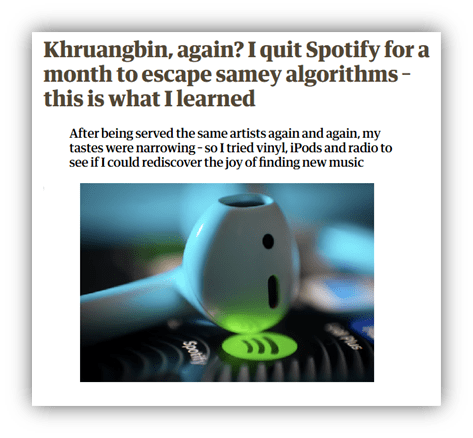 Whether they are creating an experience instead of it being an experience itself? There are a million more terrible things happening in the world and you are asking me to be fixated on this? And yet these are the scraps of discontent that fuel the Spotify-hating machine.