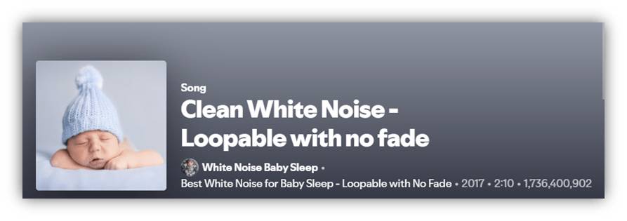 Apparently last year they took down 75 million “spammy tracks.” I’m intrigued what this means exactly – particularly since the total number of tracks on Spotify is stated as “over 100 million” – but they’re not saying any more. It doesn’t seem to mean “Clean White Noise – loopable with no fade” by White Noise Baby Sleep, because that’s still there.