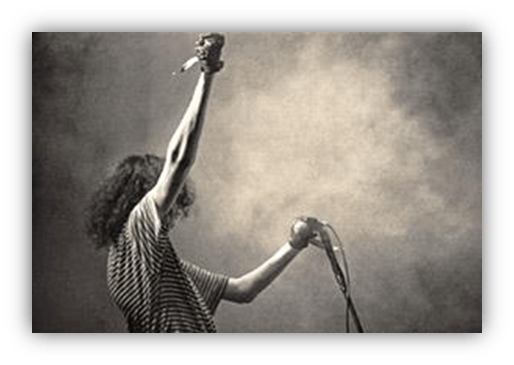 But not handsome. He was gangly and awkward and shy and dorky. He hid his long inverted isosceles triangle of a face behind long hair and sunglasses. He wasn’t even a great singer, with a round but nasal voice.