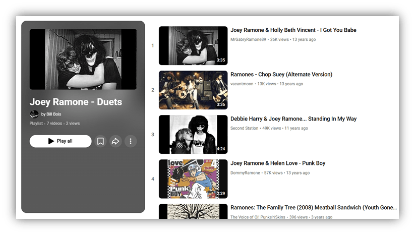So let’s take a look at those duets. Some people dismissed them as novelty songs, but there’s more happening here. Joey wasn’t just a one-note screamer.