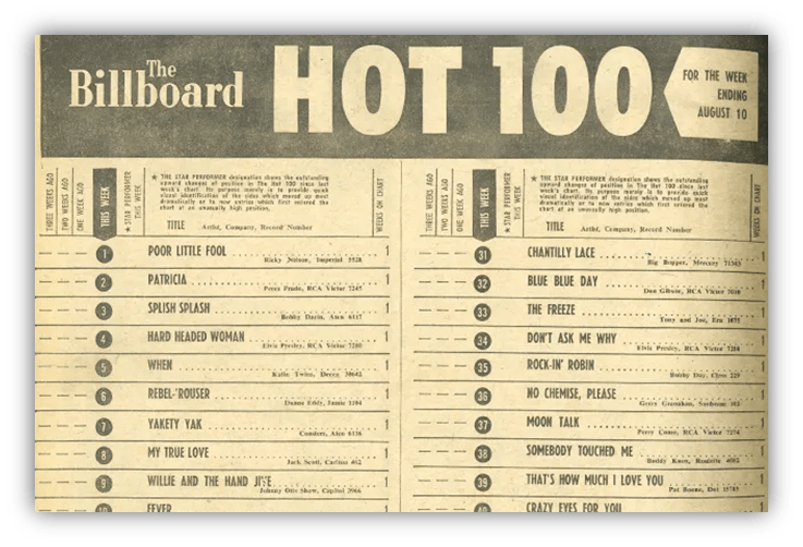 Since 1958, Billboard has tabulated charts based off of sales and radio play. It was an industry standard.